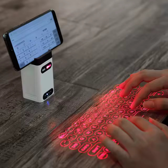 Tu teclado láser portátil que proyecta donde quieras, sin complicaciones.